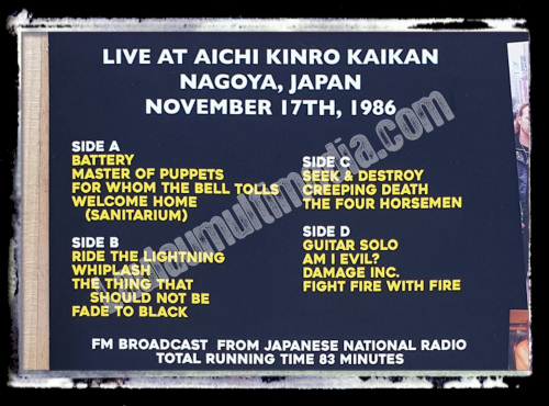 Track List : A. Battery, Master Of Puppets, For Whom The Bell Tolls, Welcome Home (Sanitarium)