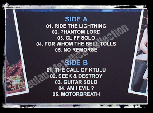 Track List : A. Ride The Lightning, Phantom Lord, Cliff Solo, For Whom The Bell Tolls, No Remorse
