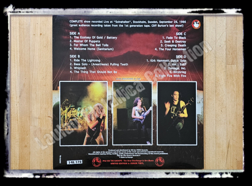Comments : Great audience recording taken from the 1st generation tape. This is the last show of Cliff Burton.