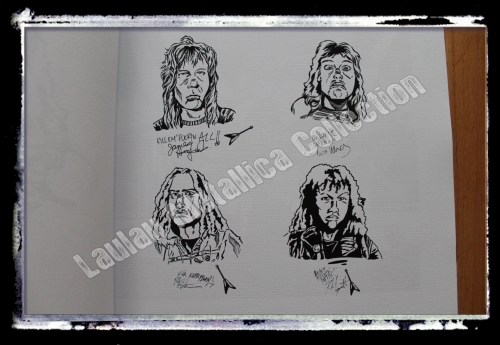 + book with printed and "signed" cartoons of all band members